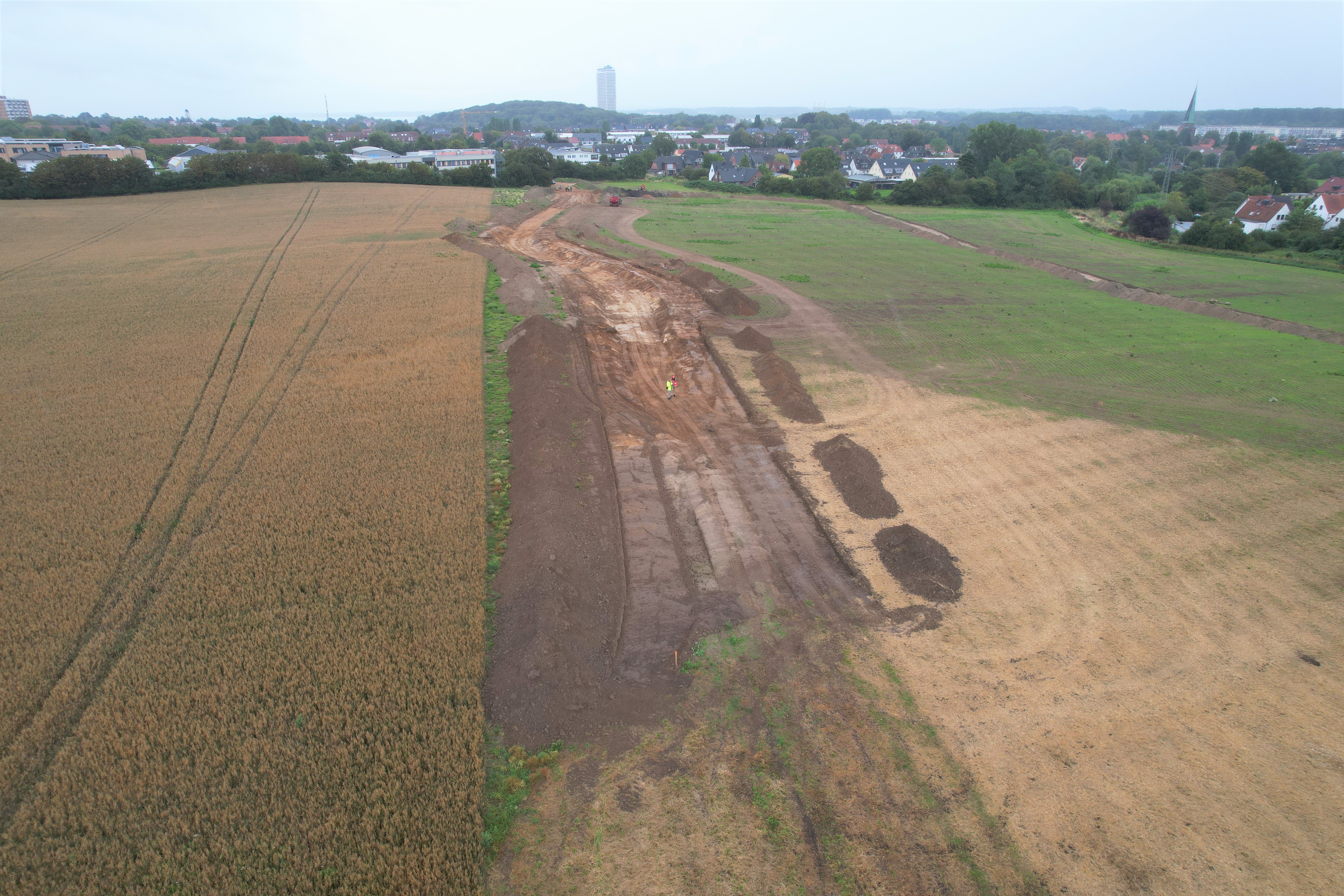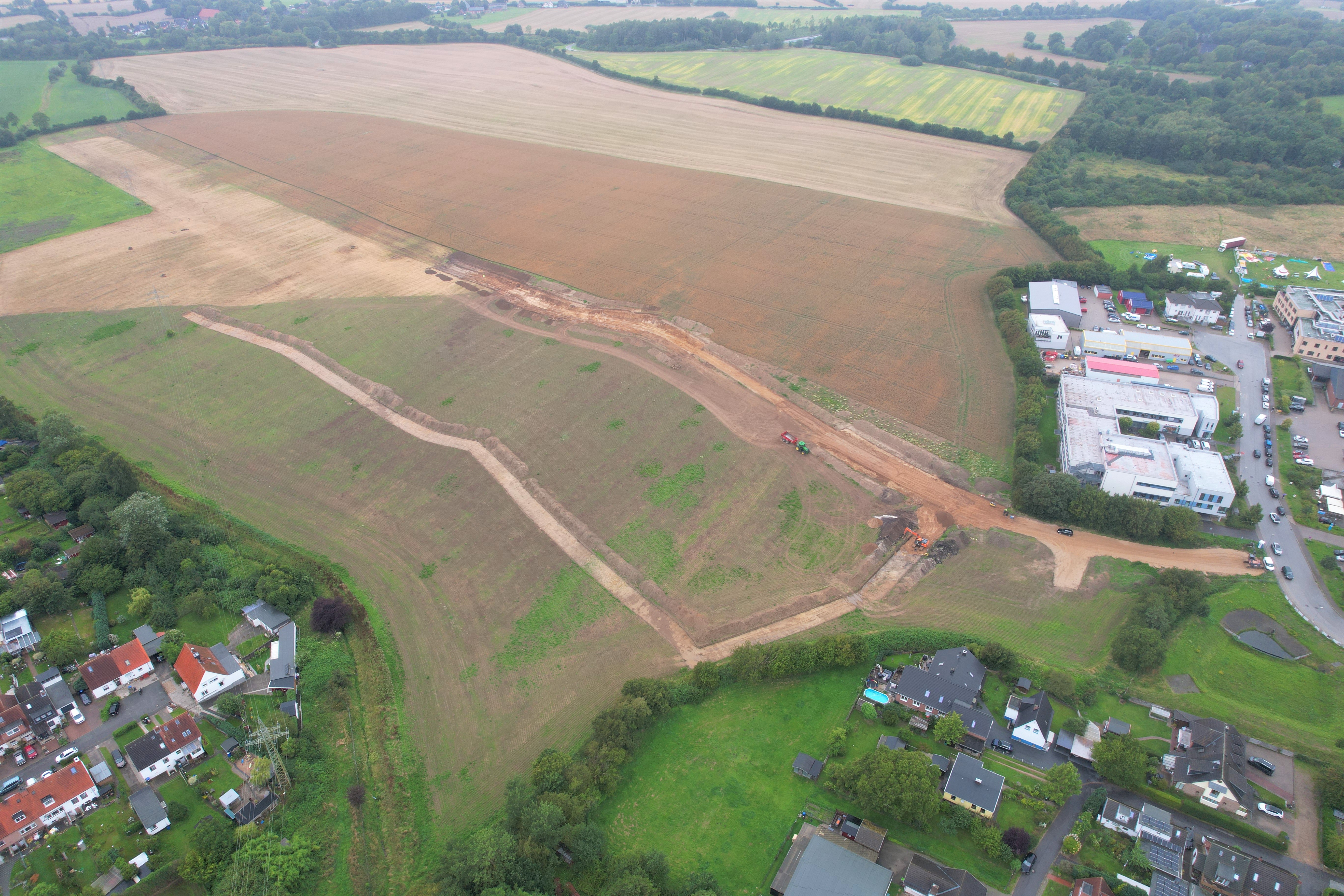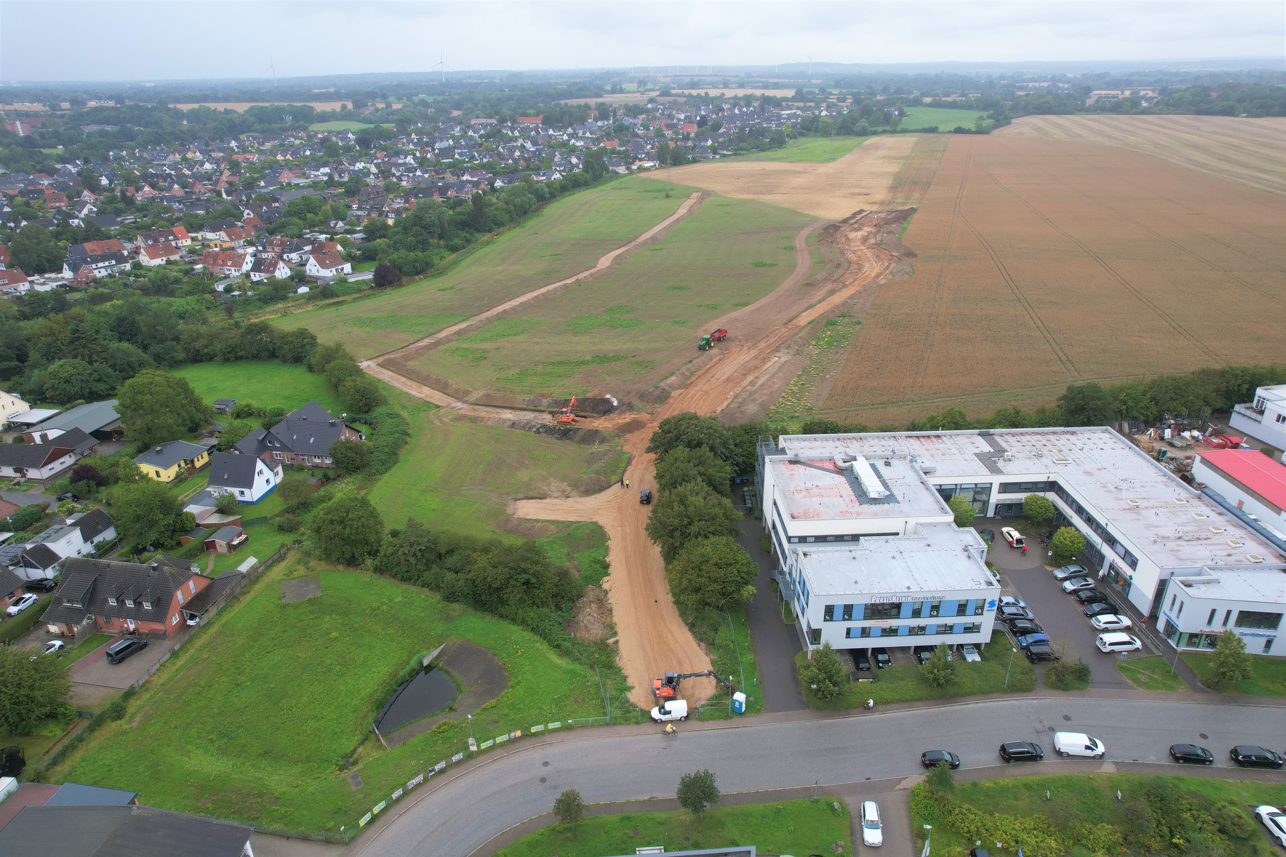 Damit die späteren Hochbauarbeiten im Quartier reibungslos ablaufen können, wird als weitere vorbereitende Maßnahme die große überirdische Stromtrasse von dem Stromversorgungsunternehmen TraveNetz unter die Erde verlegt.
